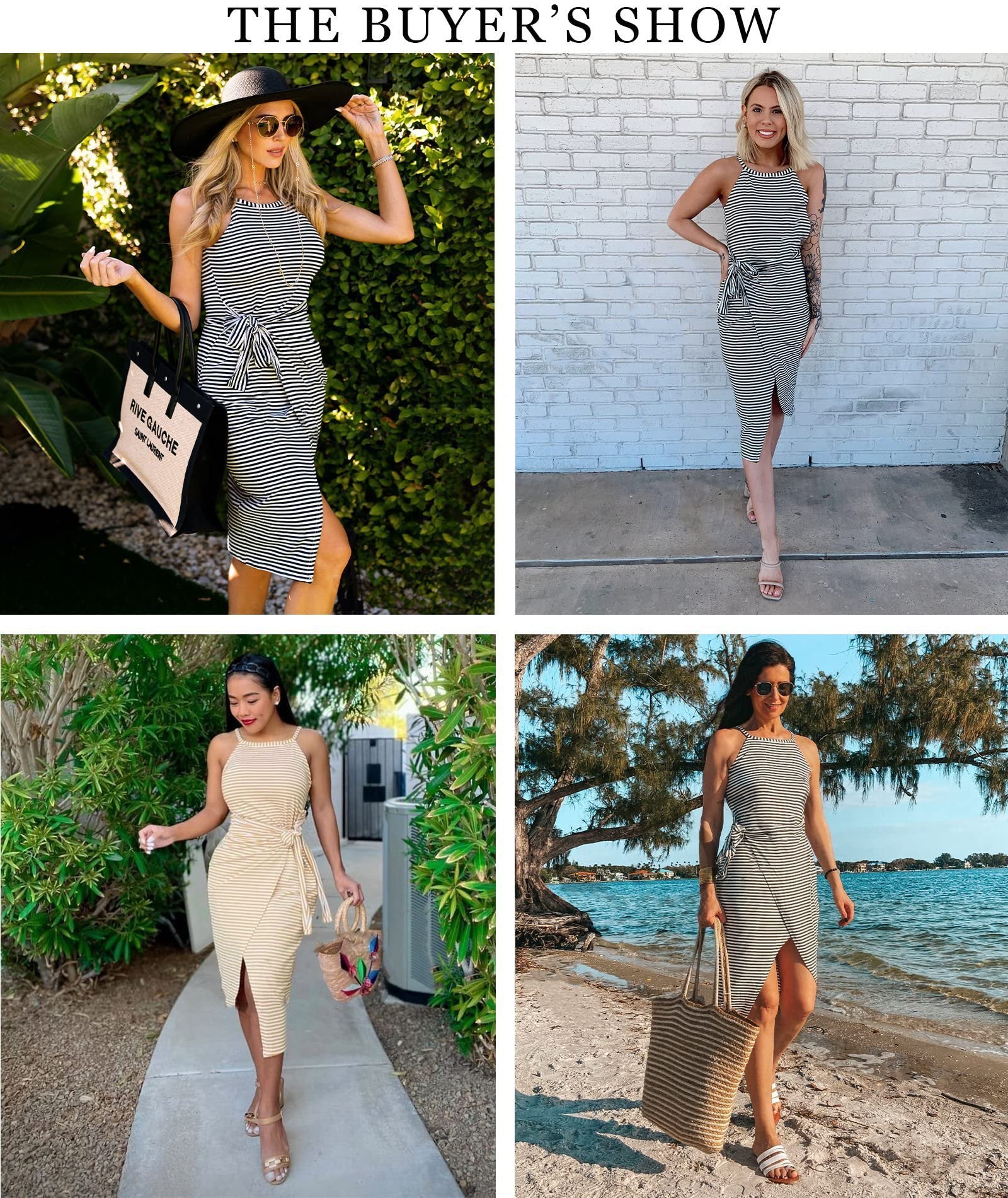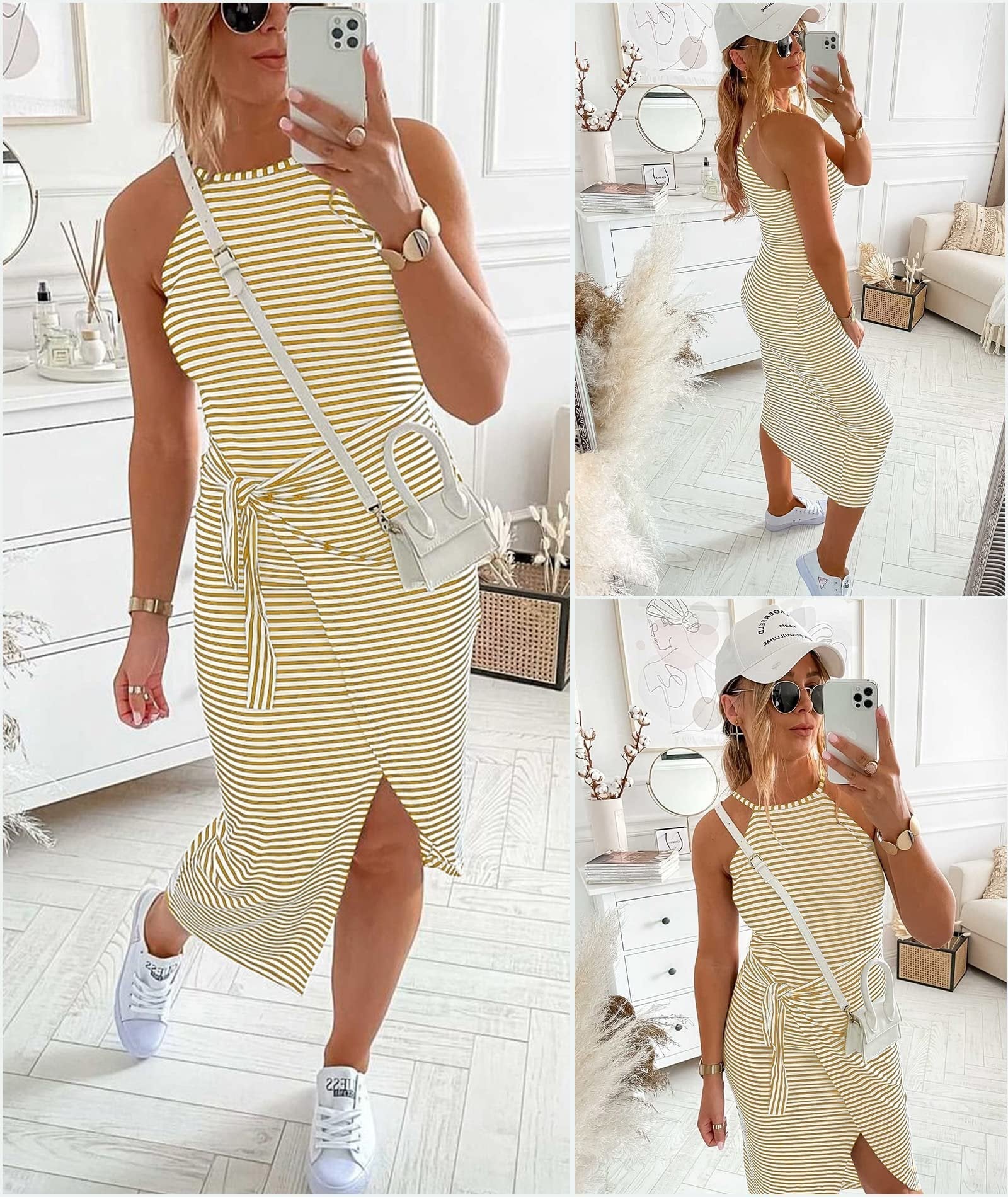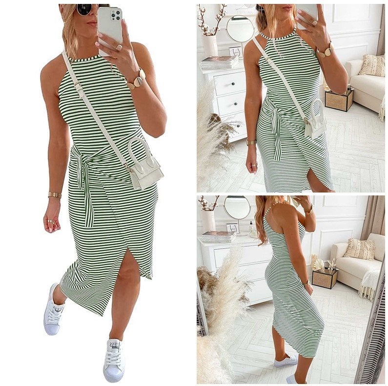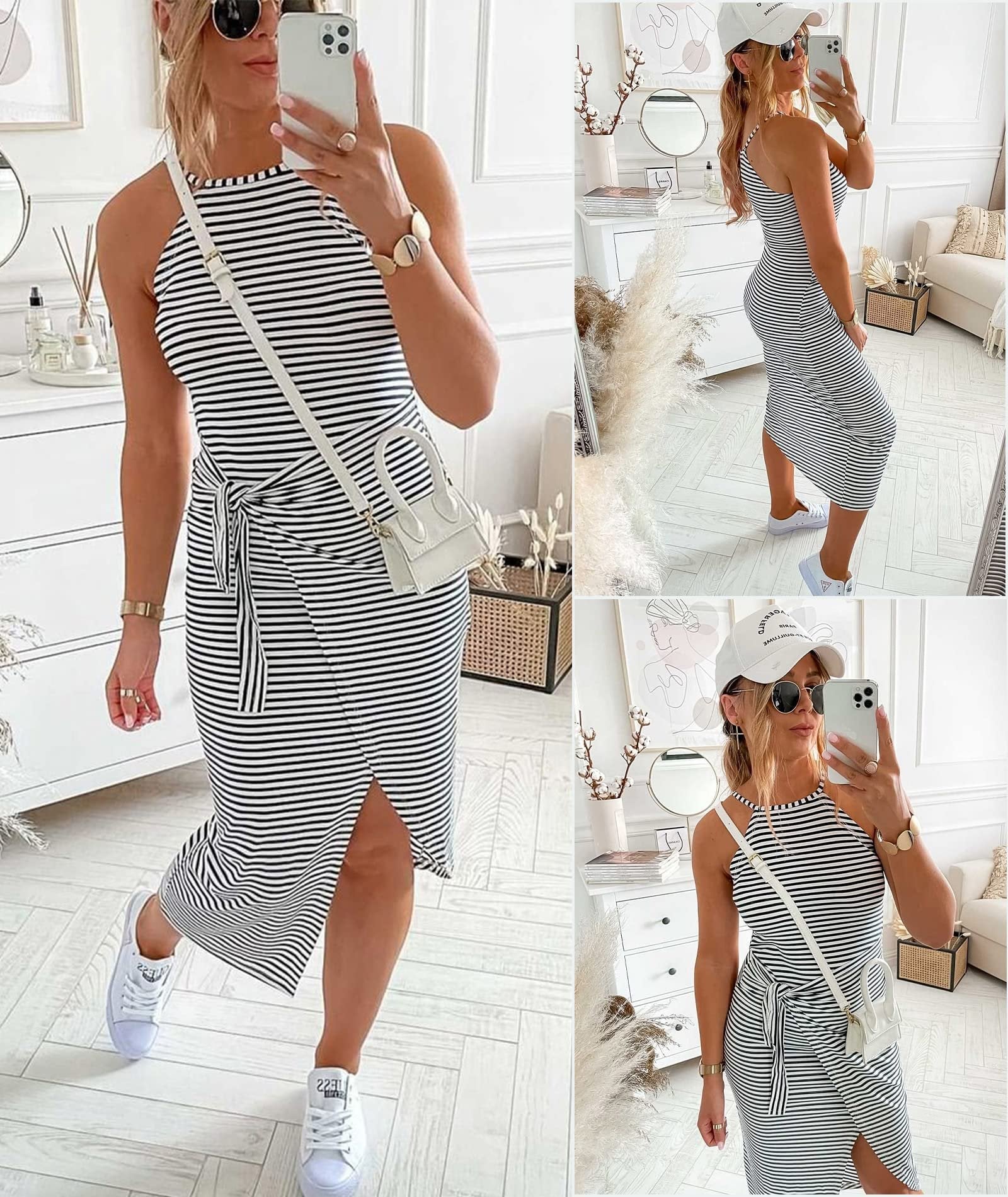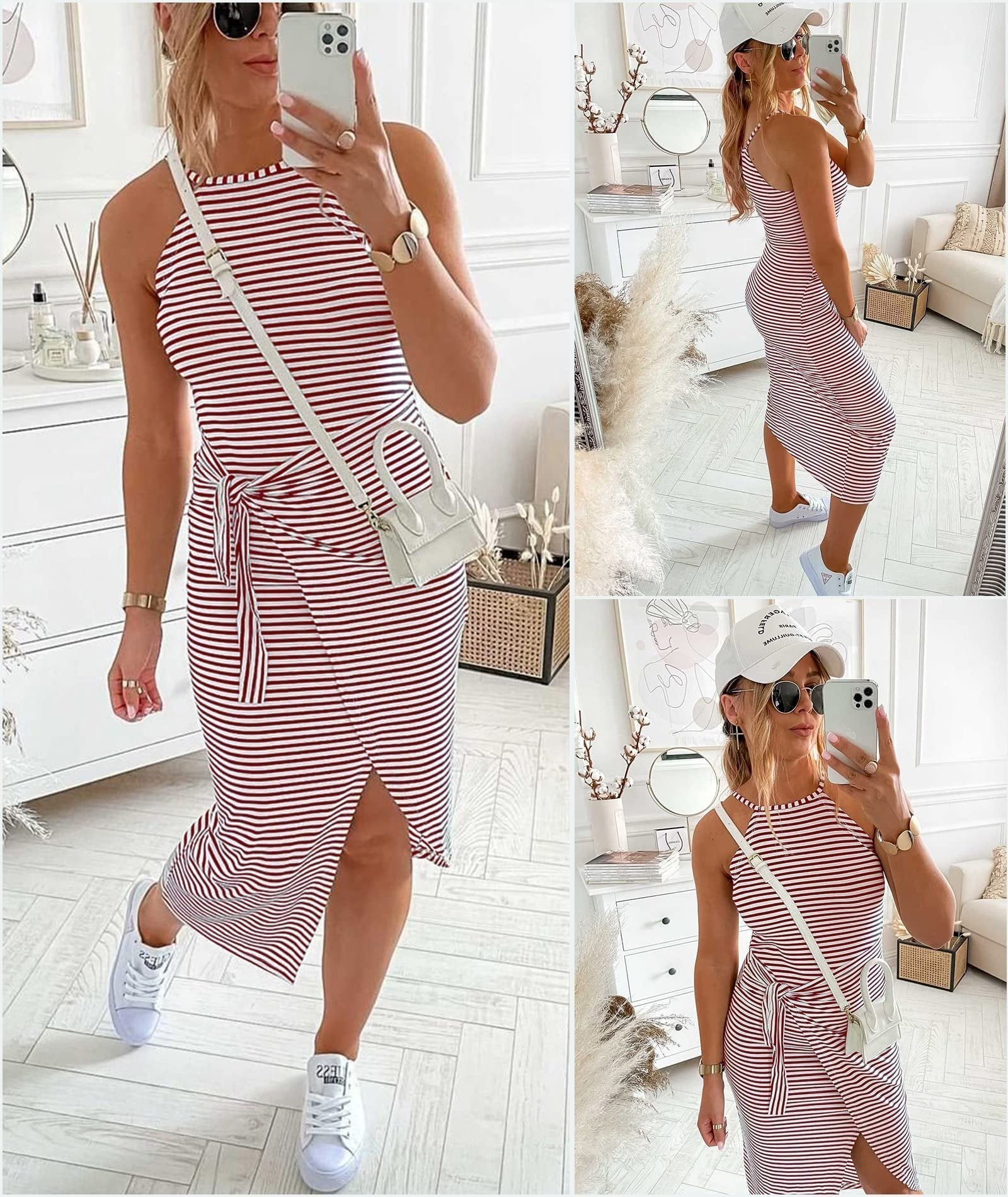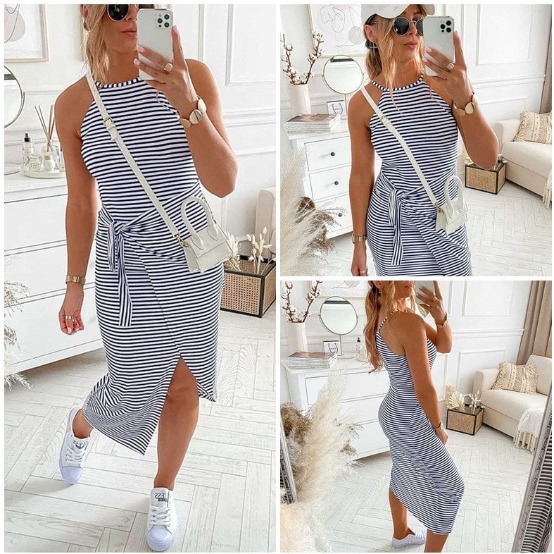 - 1 x Casualowe sukienki midi w paski bez rękawów