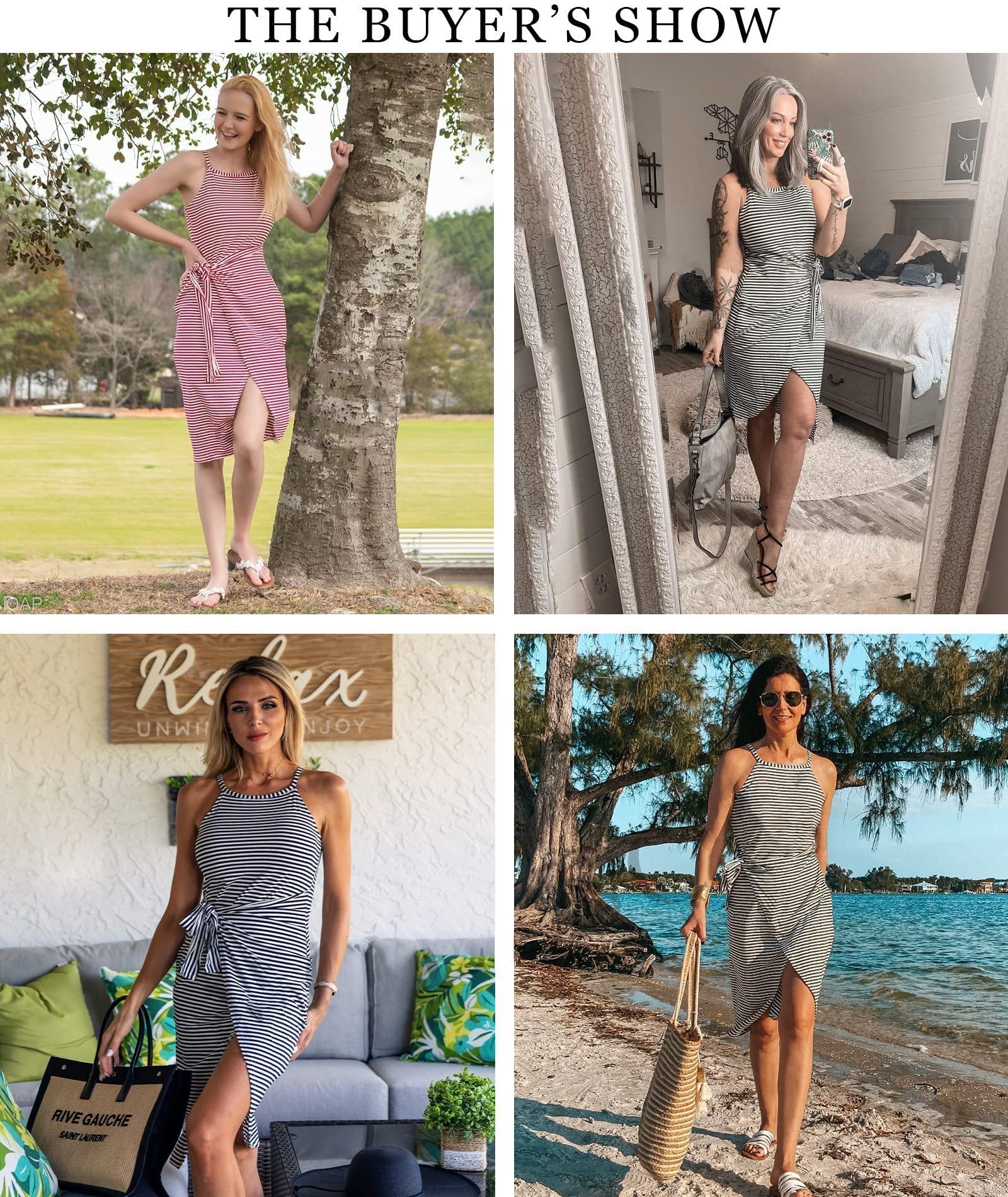 Miękka bawełna jest bardzo rozciągliwa, dzięki czemu ta letnia sukienka w paski bez rękawów pasuje do większości sylwetek. Oddychający i lekki materiał zapewnia przewiewność w upalne lato, nie martwiąc się o prześwit.